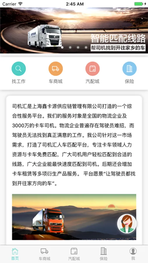司机汇是上海鑫卡源供应链管理有限公司打造的一个综合性服务平台。我们的服务对象是全国的司机及招聘司机的企业,专注司机人力资源与车辆匹配。