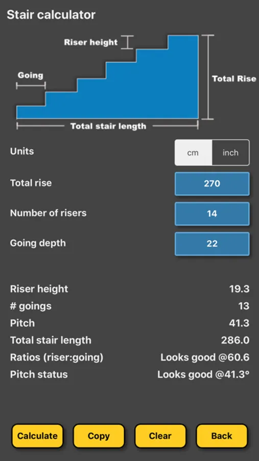 An easy way to help calculate total rise, risers, goings, pitch and total length for your straight staircase.