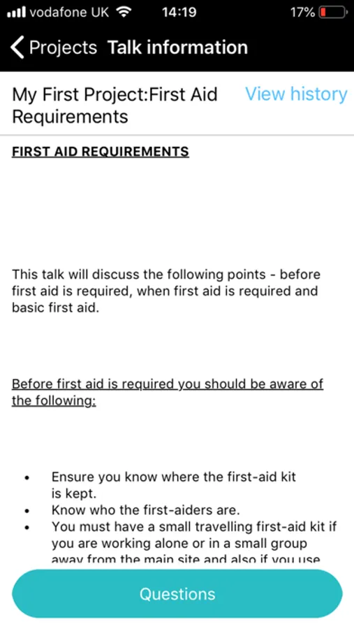 Trades can use the app to help them educate their workers and keep them compliant onsite and with agency’s such as CHAS and Constructionline. It cuts out the need of printing out toolbox talks and taking them to site. Performing the talk and taking paperwork back to the office and scanning it and sending to their clients. Toolbox talks are regularly asked for on a weekly basis on most sites.