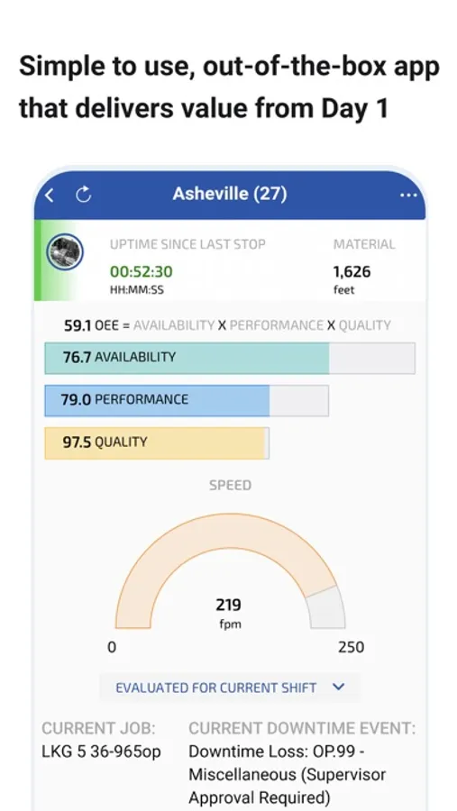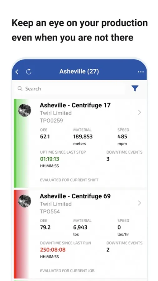 ei3 mobile app puts data of your machine's KPIs at your fingertips. Real-time indication of equipment status and performance trend provides plant floor visibility – even when you are not there. The app delivers insights that matter to you: