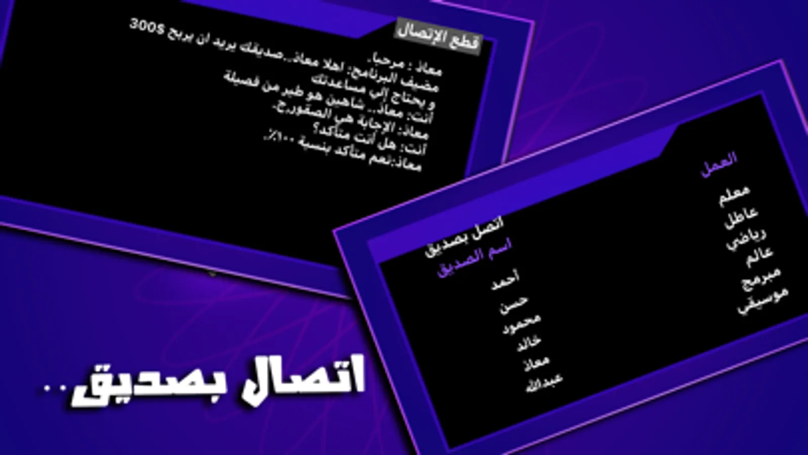 كما أنها توفر لك وسائل المساعدة المعروفة كـ الاتصال بصديق, طلب مساعدة الجمهور أو حذف اجابتين
