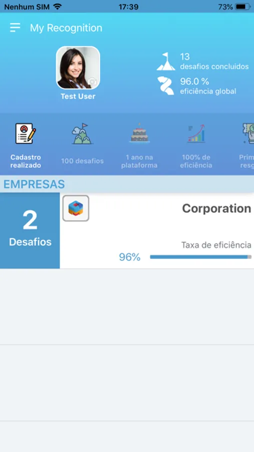 Com o aplicativo do My Recognition você poderá conferir a sua pontuação na plataforma, ver o seu rendimento, a sua lista de desafios e responder os desafios pendentes.