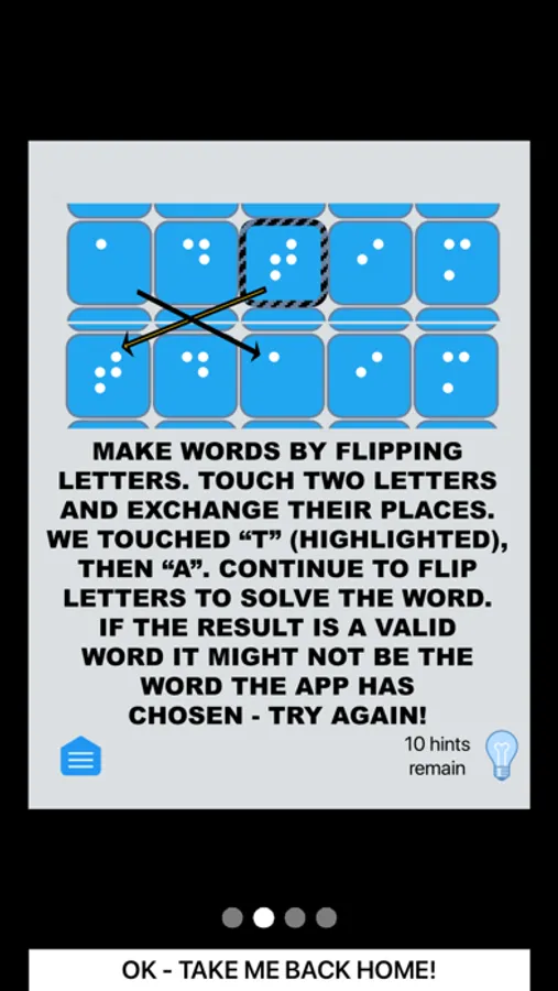 Choose your challenge - 3 or 4 letter words. Touch letters to swap them. Want more? Solve a word then click on that word and get the definition!