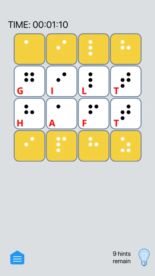 Touch the hint button and all letters that are in their proper place will be briefly highlighted. Using a hint will cost you a hint. You must solve for the word the app has chosen - which will probably help teach you new words!
