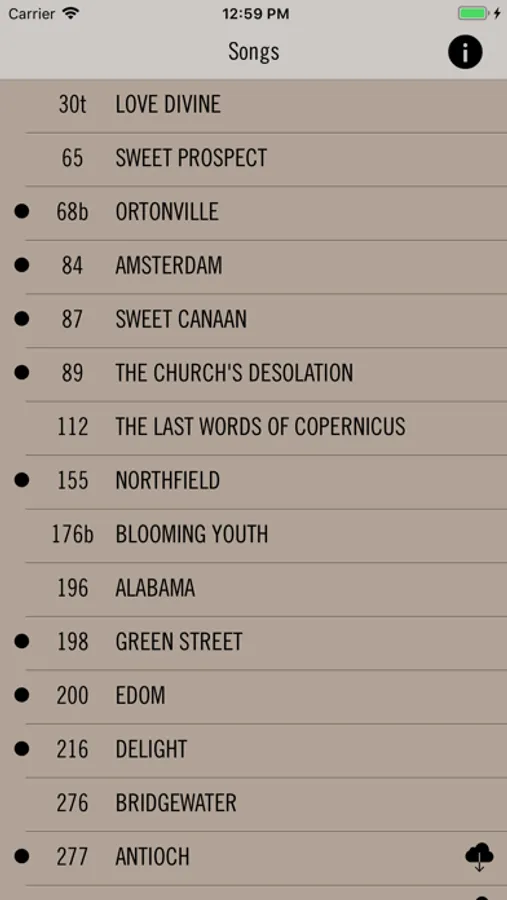 This app comes bundled with recordings of 24 songs, ranging in difficulty, all of which are regularly called at all-day singings and conventions. More recordings will become available for sale periodically in the form of “song packs” which will generally include several songs.