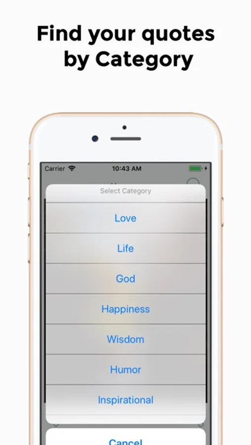 Swipe through thousands of curated and categorized quotes with a diverse selection of beautiful backgrounds.