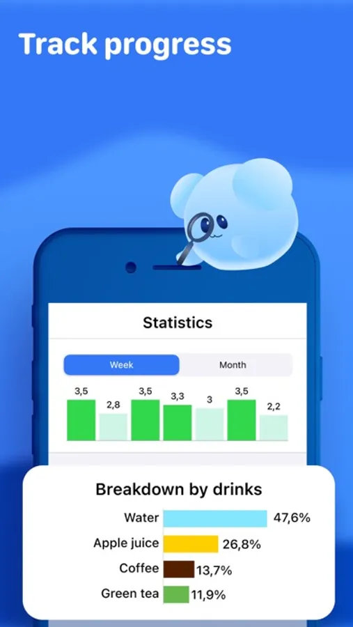 Water intake tracker will remind you to drink enough liquid every day and will teach you how to enjoy drinking water.
