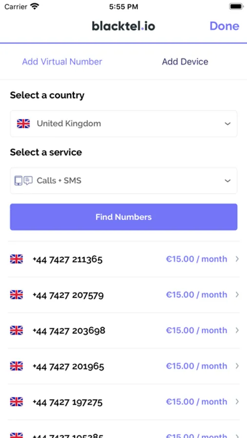Blacktel provides virtual phone numbers from many countries like: