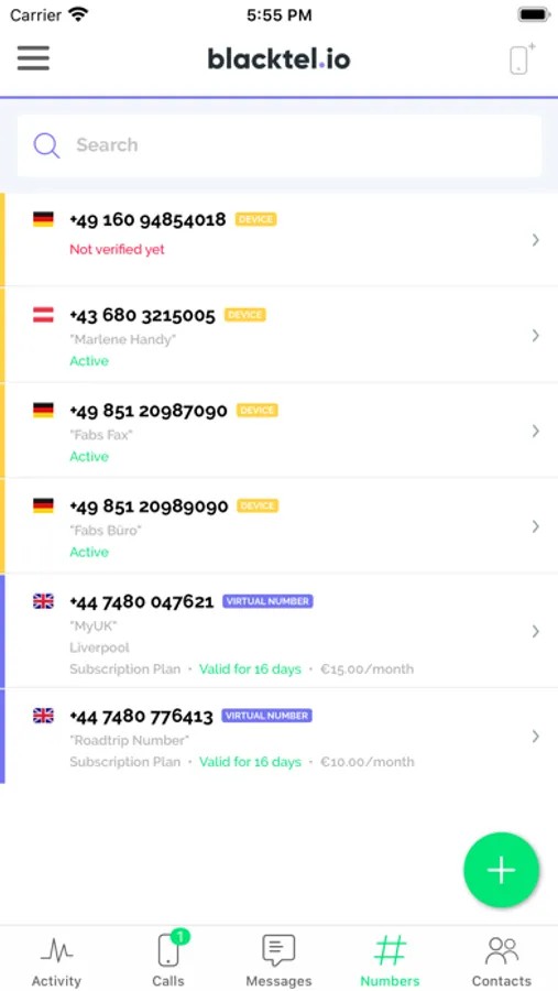 Prepaid Plan: Blacktel provides prepaid virtual phone numbers (pay as you go) for a short period of time. You have to take care to renew your number before your prepaid plan is running out. Otherwise you number gets deleted and you can not get it back.