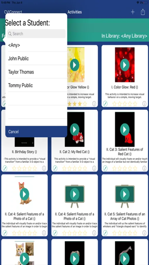 CViConnect Pro is an iPad application intended to support teachers of the visually impaired (TVIs) who are working with students who have Cortical Visual Impairment. The app can be used by teachers to prepare and run visual activities with their students. The goal is to aid in the process of improving the visual impairment with this iPad application, and grow the awareness of CVI as a whole and provide educational content related to CVI.