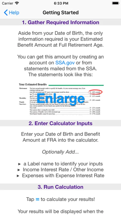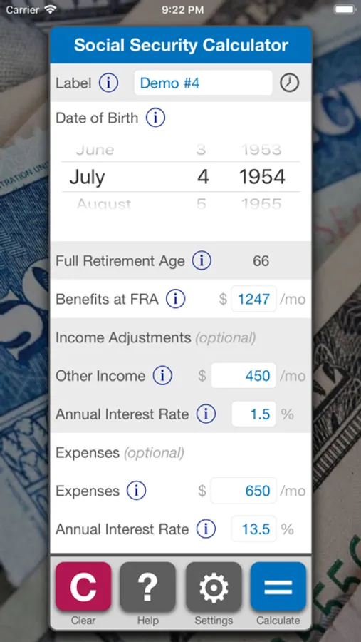 We have carefully followed the benefit rules from the Social Security Administration and have tested to ensure that our calculations are as accurate as possible. However, since we are not affiliated with the SSA, this app is only intended to be used for reference. Before making a retirement decision we strongly recommend reviewing SSA.gov and other resources for more information. (The app links to several useful resources in Help > Additional Resources.)