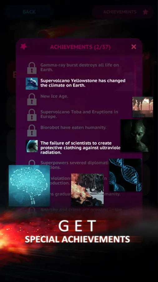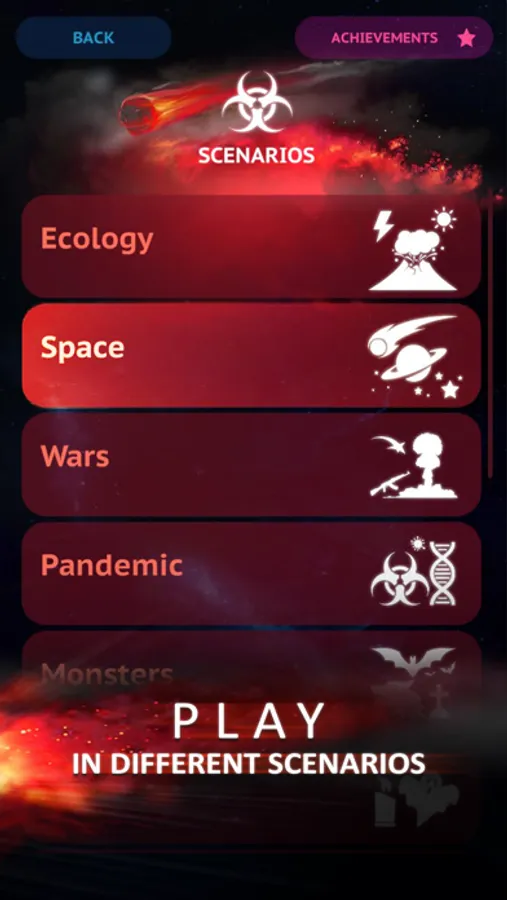 The game contains the ability to create an apocalypse at different times of mankind in 14 scenarios: