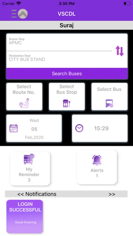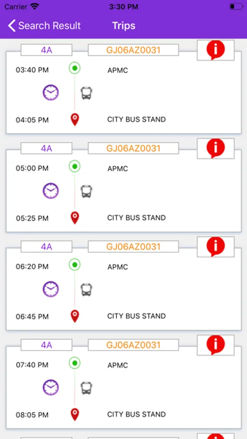 * Running trip details , ETA , Next bus stop , Nearest bus stop and Current
