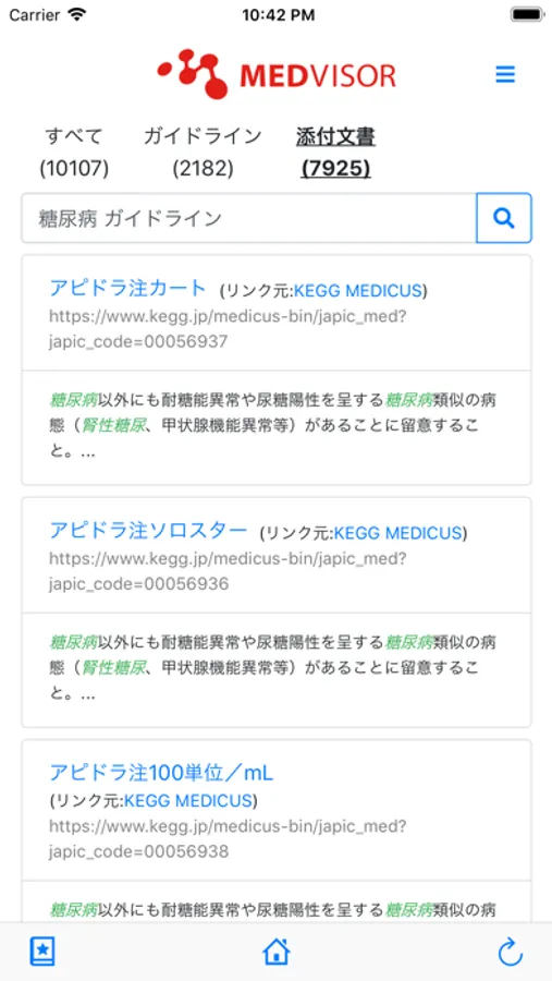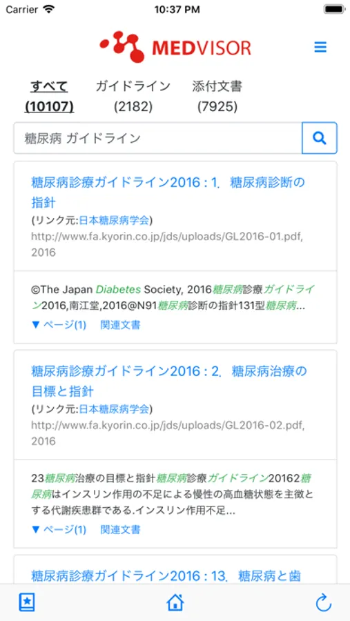 - タブ(すべて/ガイドライン/添付文書)を切り替えることで、検索対象を変更できます