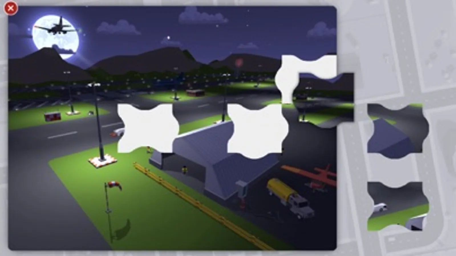 In this first version we have a detailed city scene, a fully functional airport, a thrilling car race and a port with ships and trains. The first two locations are free. The remaining scenes can be purchased within the game.