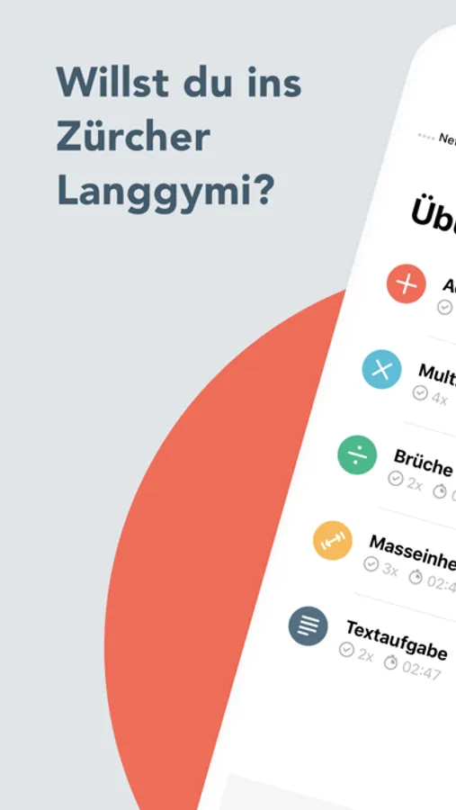 Bereite dich mit Mathilda auf viele Rechenaufgaben der Aufnahmeprüfungen Zürcher Langgymnasien vor.