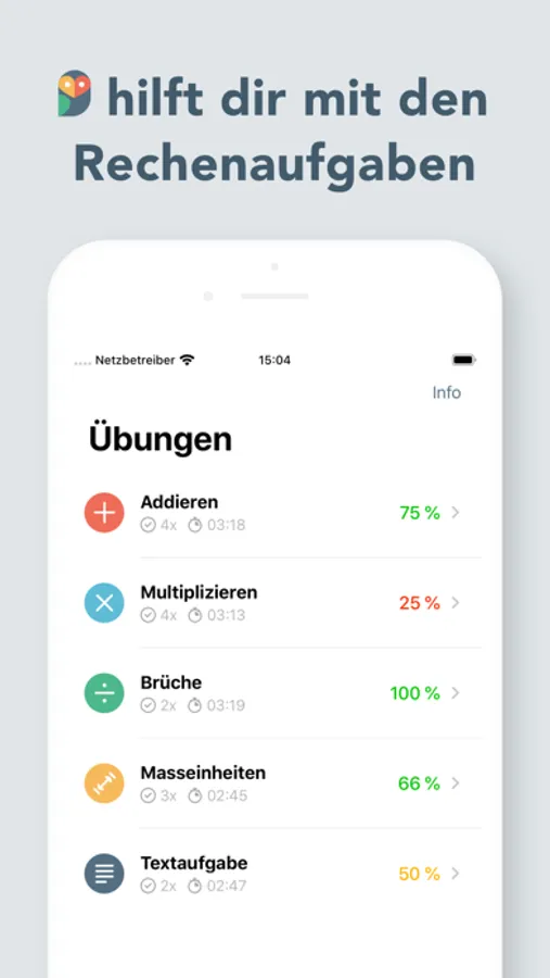 • Der Schwierigkeitsgrad der Gleichungen wird immer deinem Niveau entsprechend angepasst.