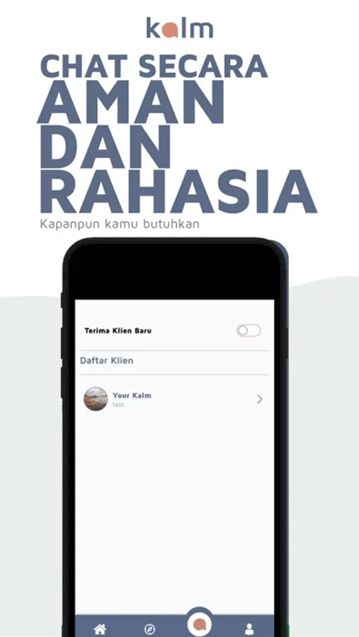 Konseling melalui KALM menggunakan sistem chat yang rahasia dan aman di dalam platform KALM sendiri, tidak diarahkan ke aplikasi chat lainnya seperti LINE ataupun WhatsApp.