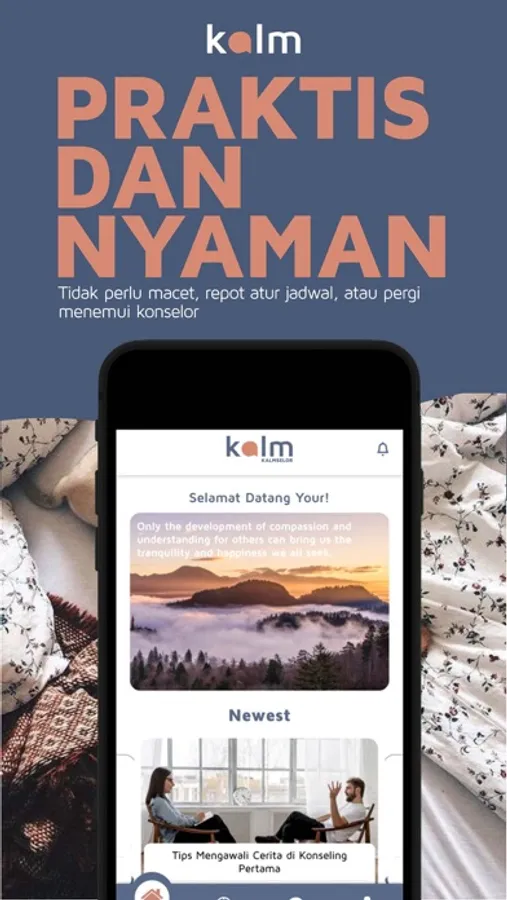 Bagi Anda konselor, psikolog, dan psikiater profesional, rasakanlah kebebasan memberikan Konseling Tanpa Batas melalui aplikasi Kalmselor! Bergabunglah dengan KALM dan jadilah seorang Kalmselor.