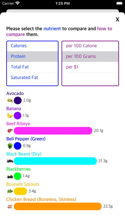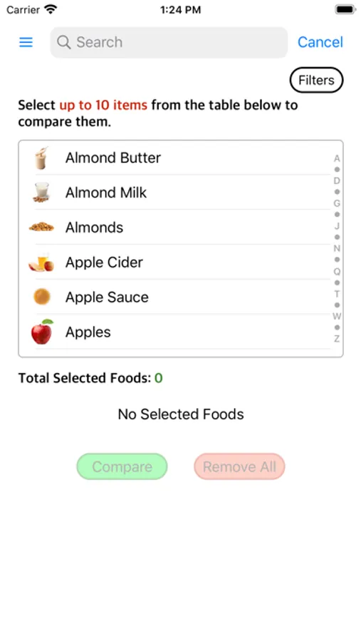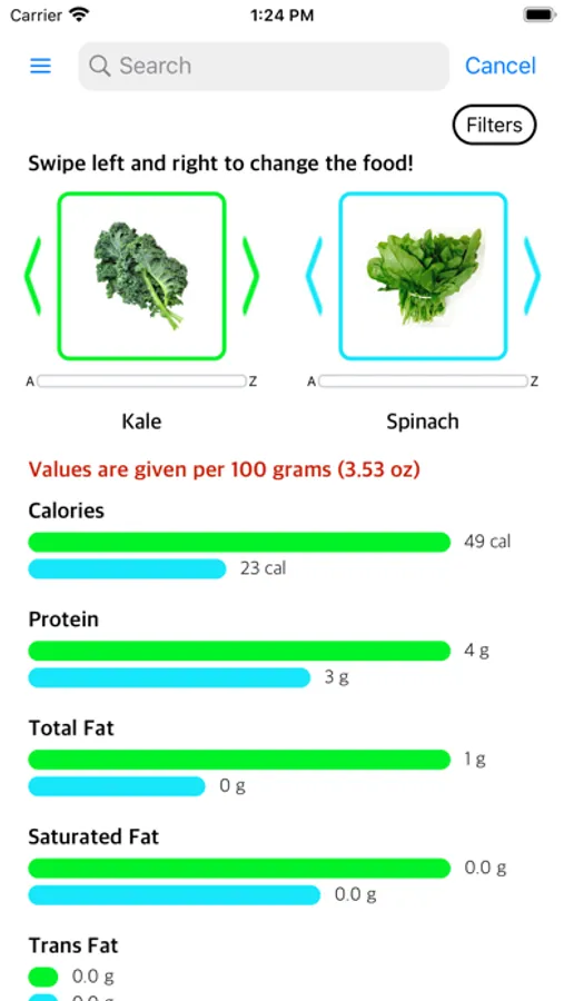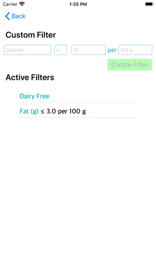 Set custom filters to narrow the foods you see in the app and make comparing the foods you want that much easier!