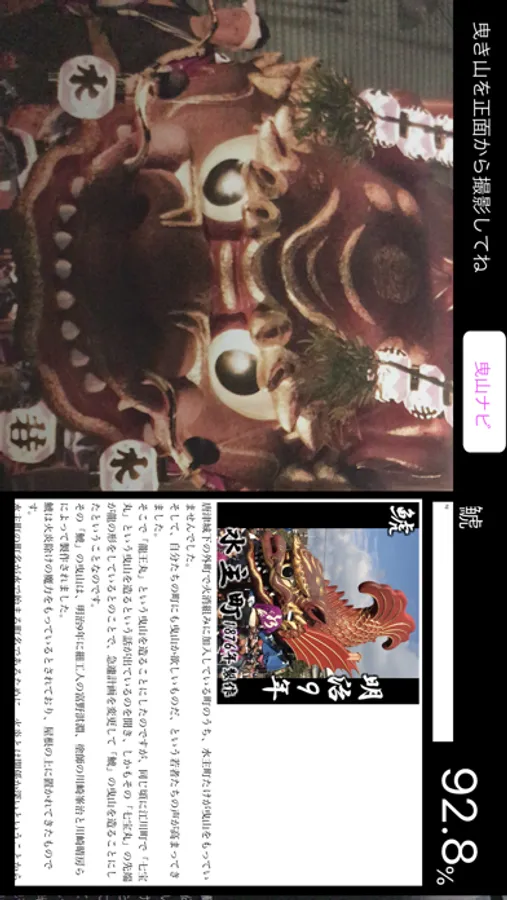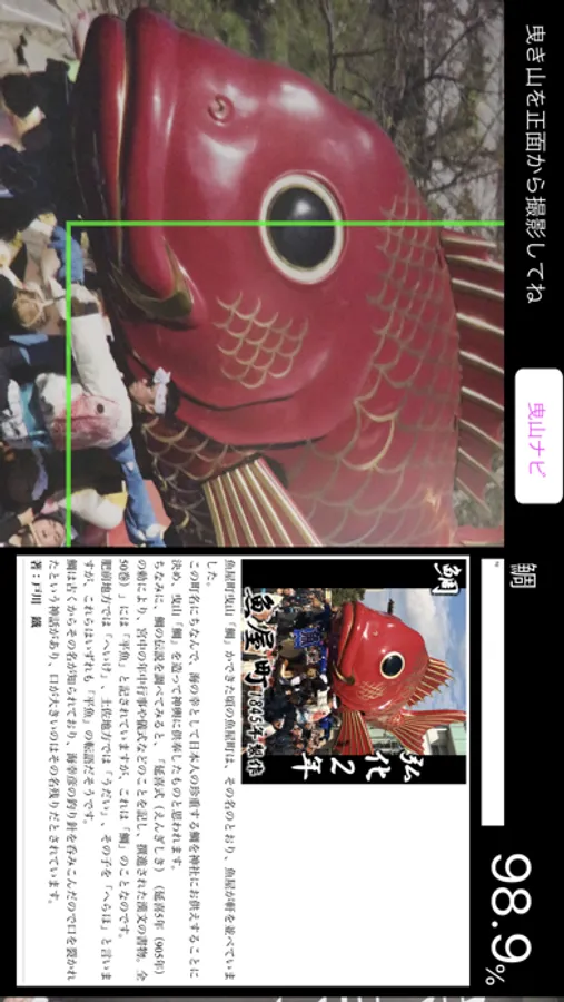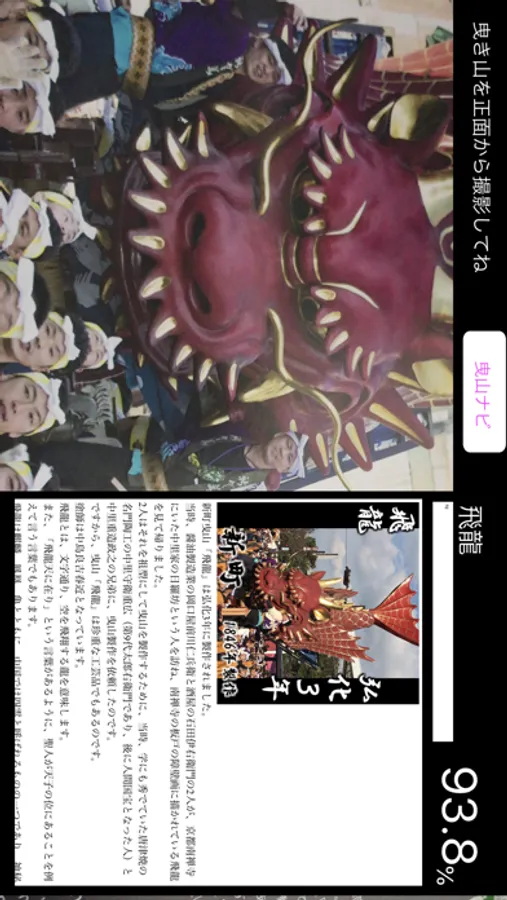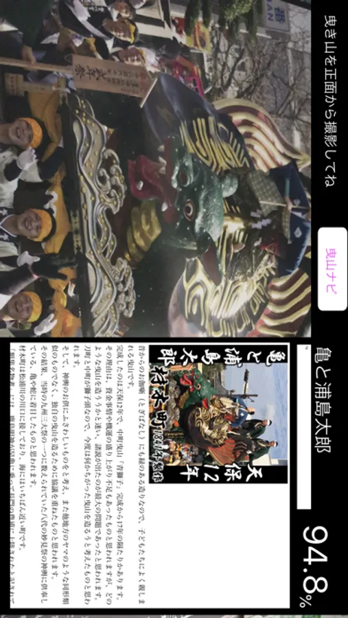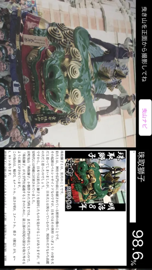 曳き山14台を認識し、曳山の歴史情報を取得できます。