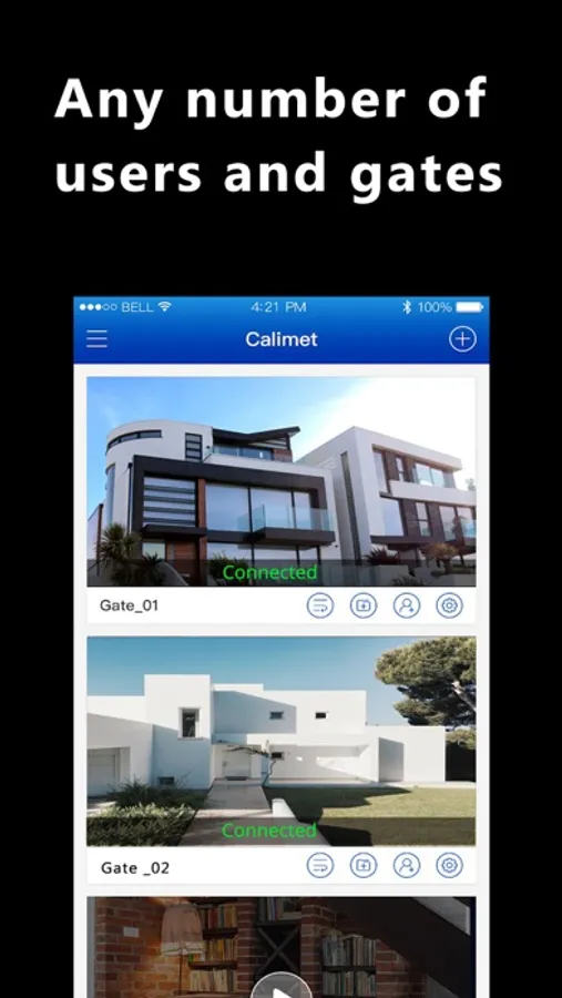 The Smartgate App works with the Calimet Camera to remotely open and monitor your gate. It allows any number of users, and any number of gates.