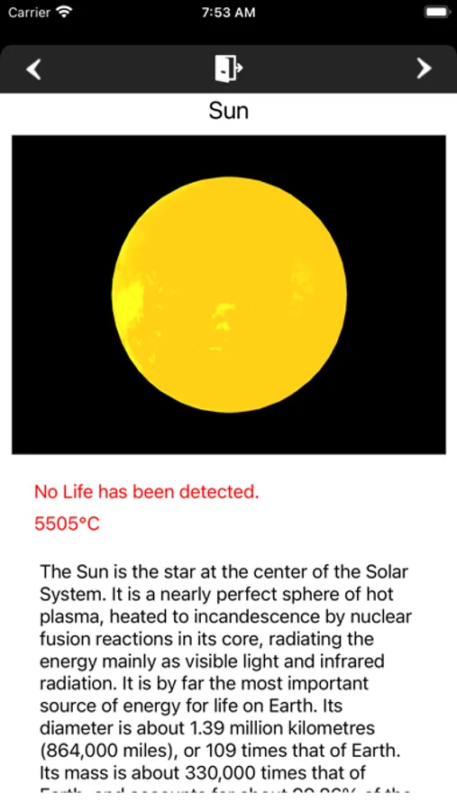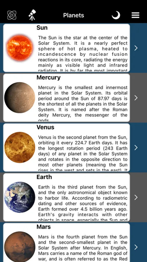 This application is a concentrate of scientific knowledge of each celestial body of our solar system. This information is intended for a wide audience and no previous experience/knowledge is necessary.