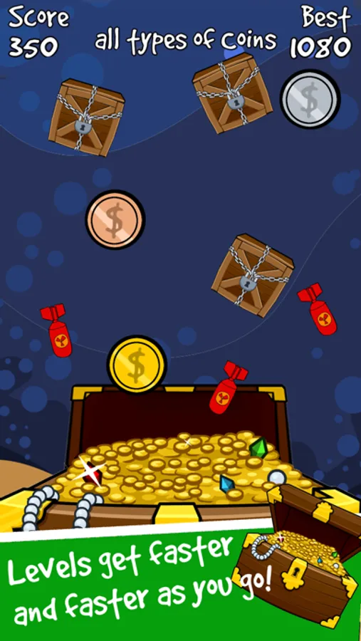 Master breaking open the falling wooden crates to reveal the treasure, in Looty Coin, the fast paced mini game you just won't be able to put doze!