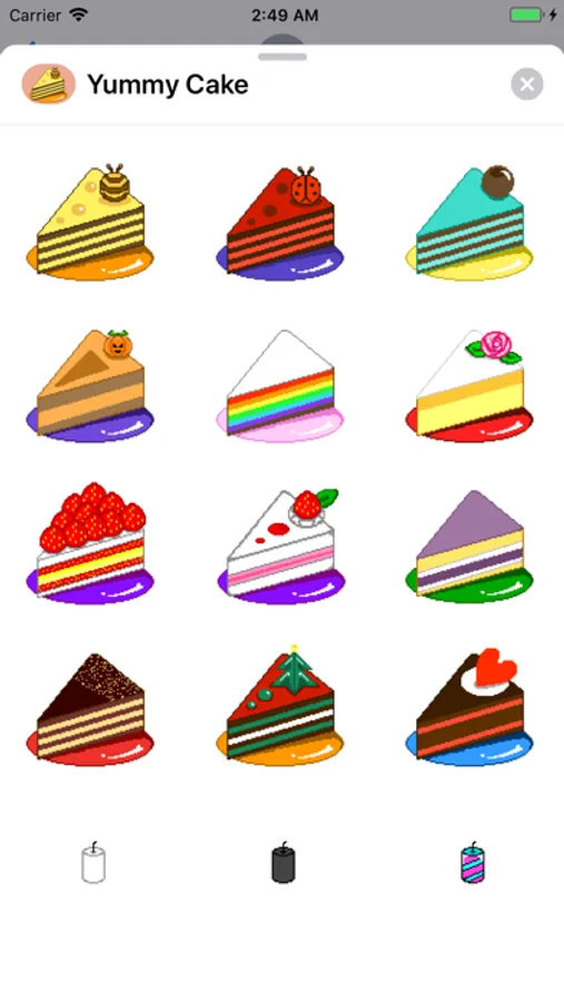 Decorate your party cakes with more than 30 adorable pixel-art cakes and animated candle flames. Let's send your lovely message with these fantastic cakes!