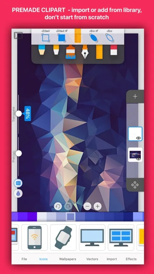 * Import and export vector images in PDF, PNG and JPEG up to 4096x4096 pixels