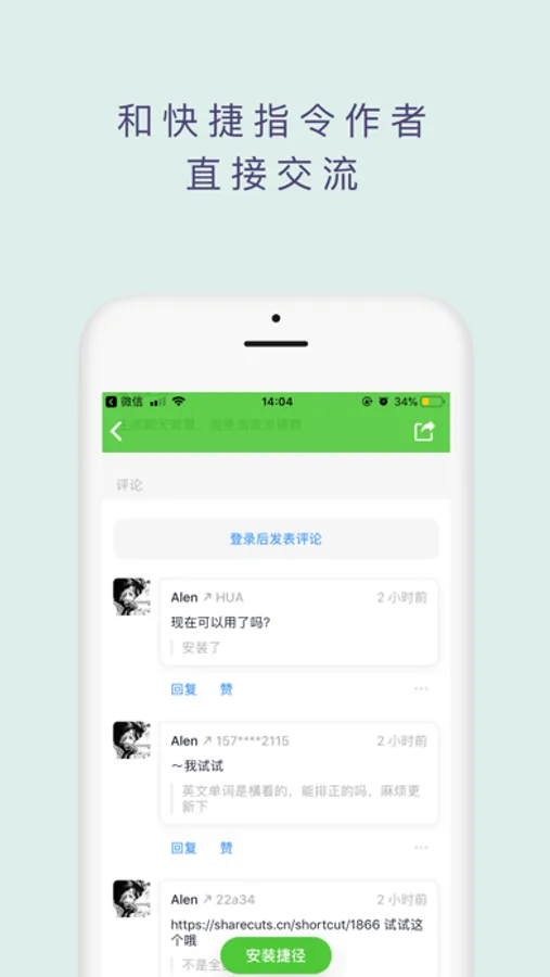 我们为每个捷径、快捷指令创建了精美的主页,你可以通过视频浏览捷径、快捷指令功能,可以给快捷指令开发者点赞或者直接和开发者交流。