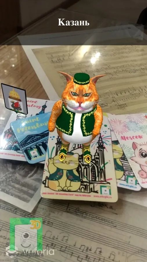 3. Наведите смартфон на магнит и увидите 3D модель достопримечательности, или рассказ 3D Кота Казанского, или как 3D котик подарит цветы.