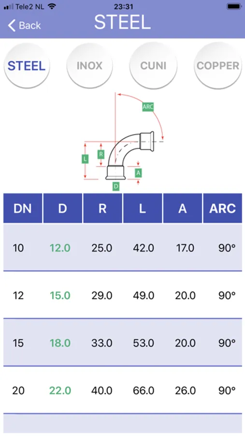 elbows and tees of materials such as Steel, Copper, CuNiFer, Stainless Steel,