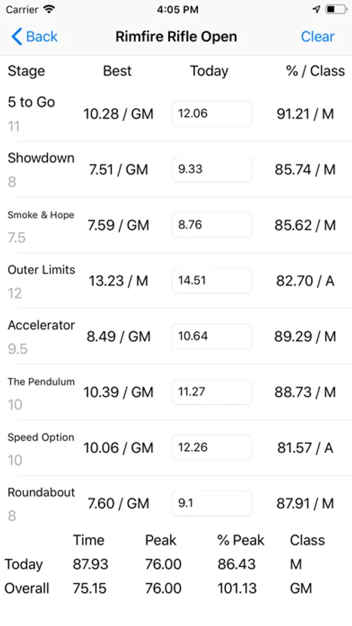 As you finish stages, the app will maintain a running total of your total match time. Also, any new best times will be instantly reflected in your overall classification scores--no more waiting a week or more to see if you've moved up in class. The app will also calculate the time cuts you need to advance to higher classifications in all the divisions you shoot.