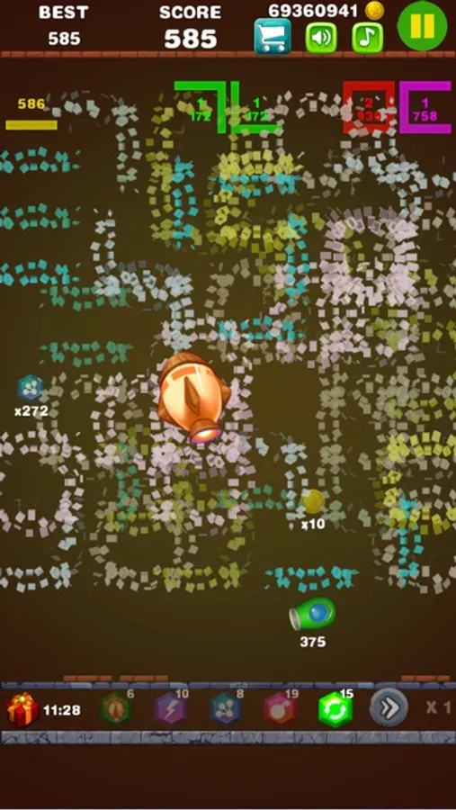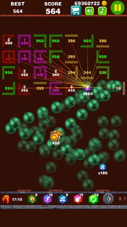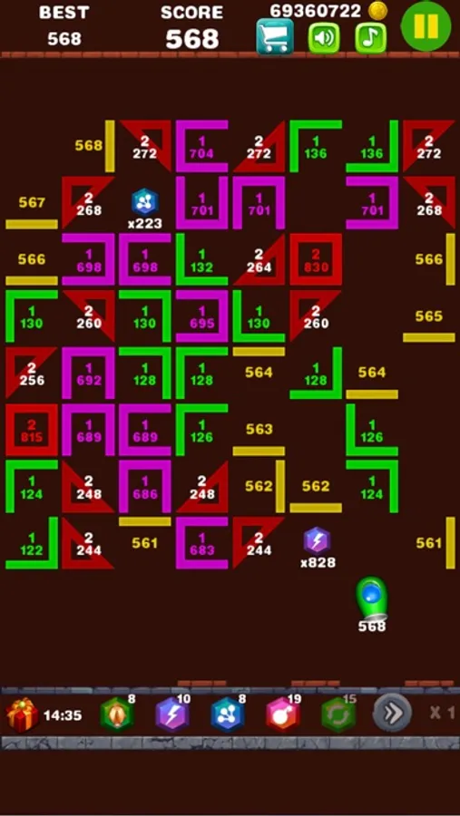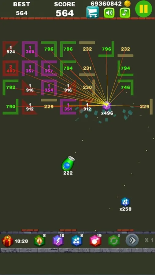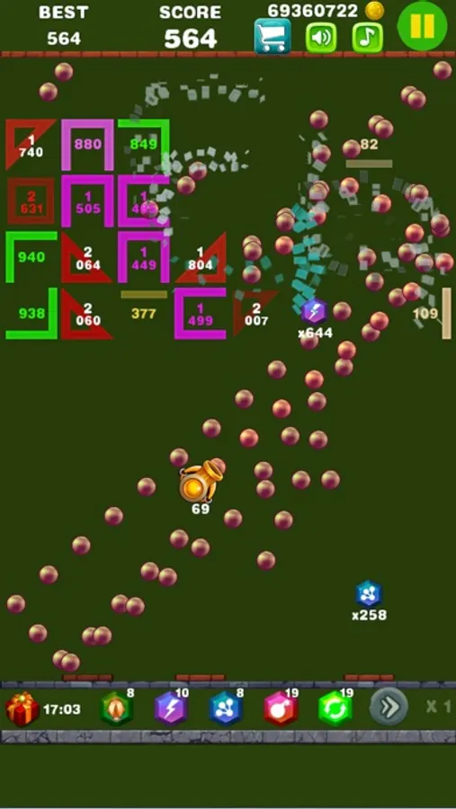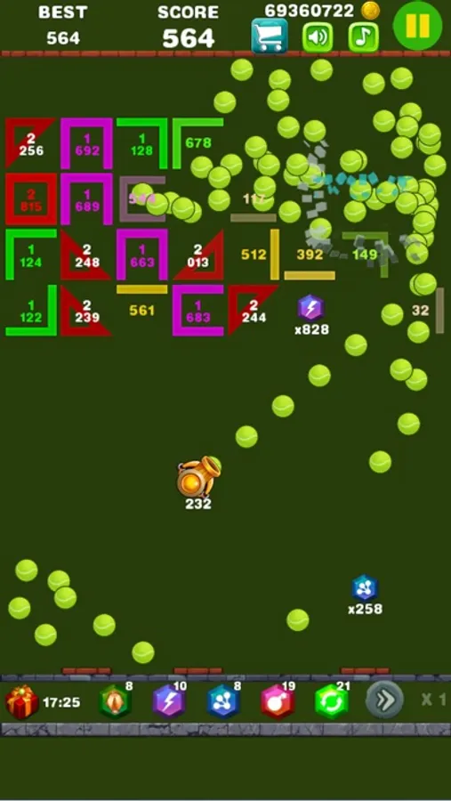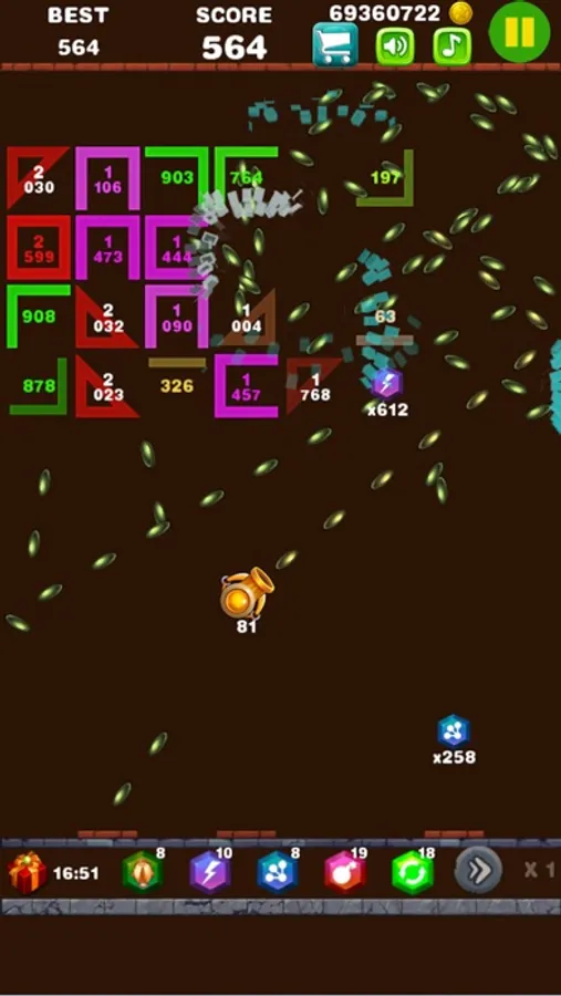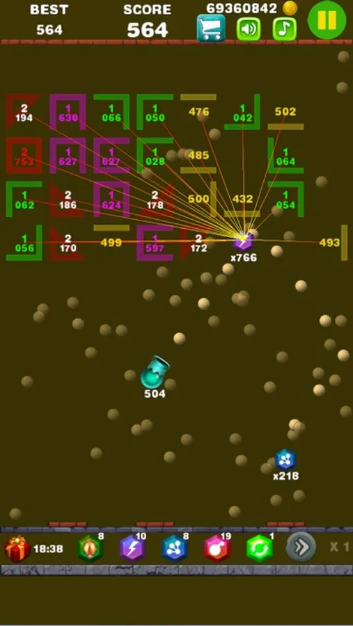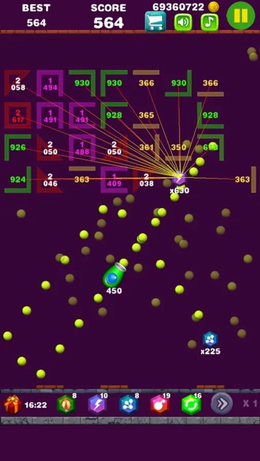 √ Hold the screen with your finger and move to aim and shoot balls to break the bricks.