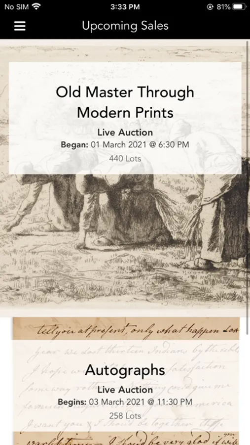 Swann Galleries is an auction house of collectors, for collectors. Use our app to browse upcoming auctions, register for a sale, bid live and in advance, and track items of interest.