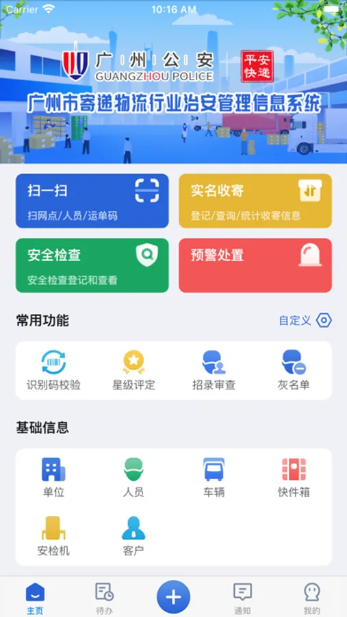 广州寄递物流App是广州市寄递物流行业治安管理信息系统的附属App,依托该系统,此App可以信息查询、查安全检查等等,也可用于安全检查登记、可疑件登记、案事件登记、预警处理等。更加方便公安、企业使用该系统。