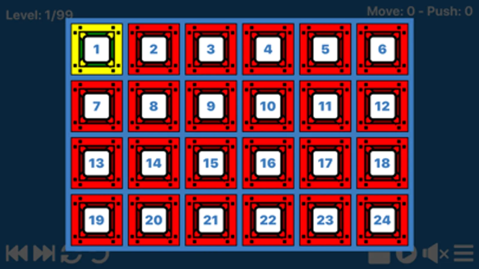 The game is played on a board of squares, where each square is a floor or a wall. Some floor squares contain boxes, and some floor squares are marked as storage locations.