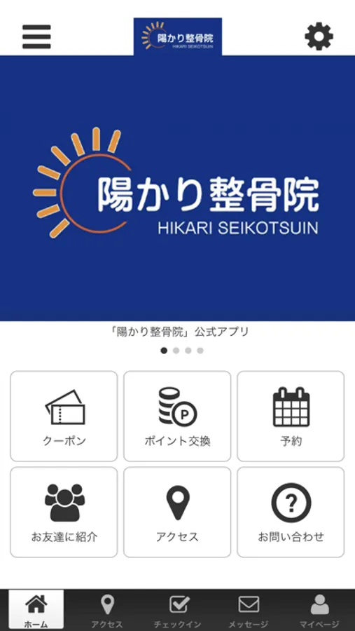 このアプリでは、陽かり整骨院の最新情報の受け取りや便利な機能を使う事ができます。