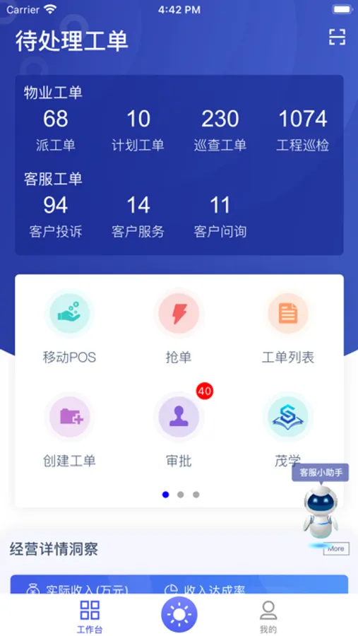 茂管家主要针对世茂物业员工、合作伙伴等推出的移动版员工自助快捷工作平台,实现报事报修、自助考勤、工单绩效、服务业务等功能。