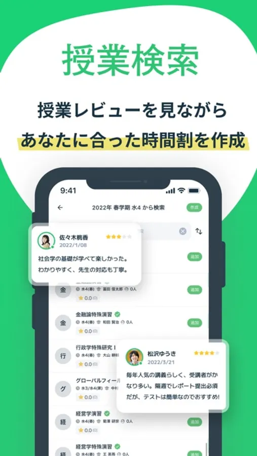 ・シラバスから簡単に時間割作成ができ、スケジュール管理もしやすい時間割りアプリを探している