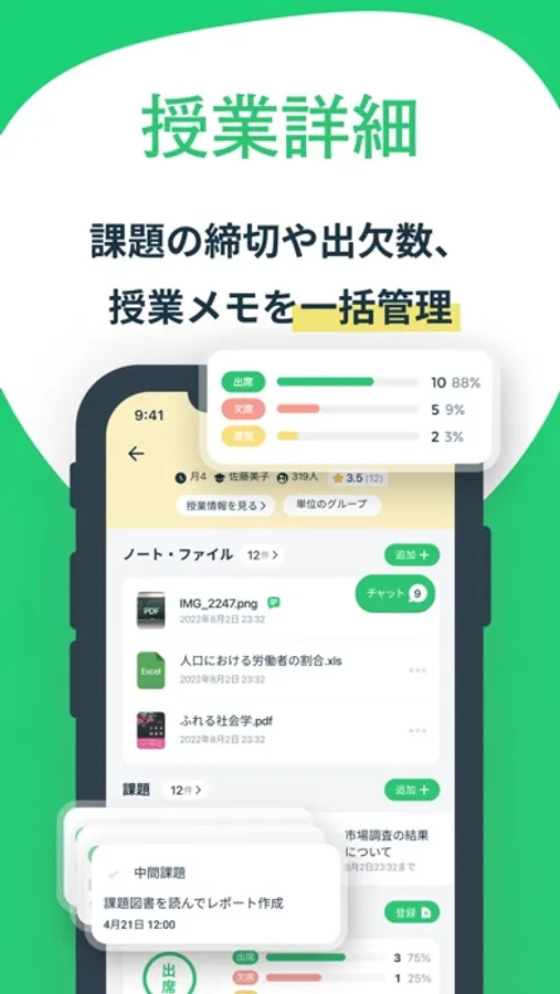 大学のシラバスからワンタップで講義を登録することができます。シラバスの確認や出席管理、ノート作成など、時間割作成だけではなく授業を受けるために必要な機能が全て揃っています。
