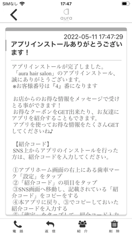 auraのアプリをSNSを通じてお友達に紹介する事ができます。