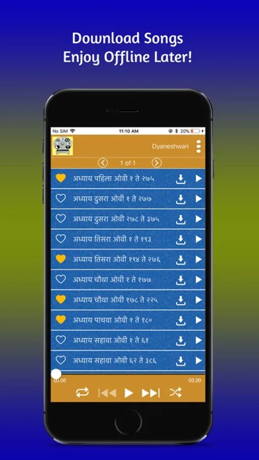 The app lets you download, listen and also lets you mark your favorite songs.