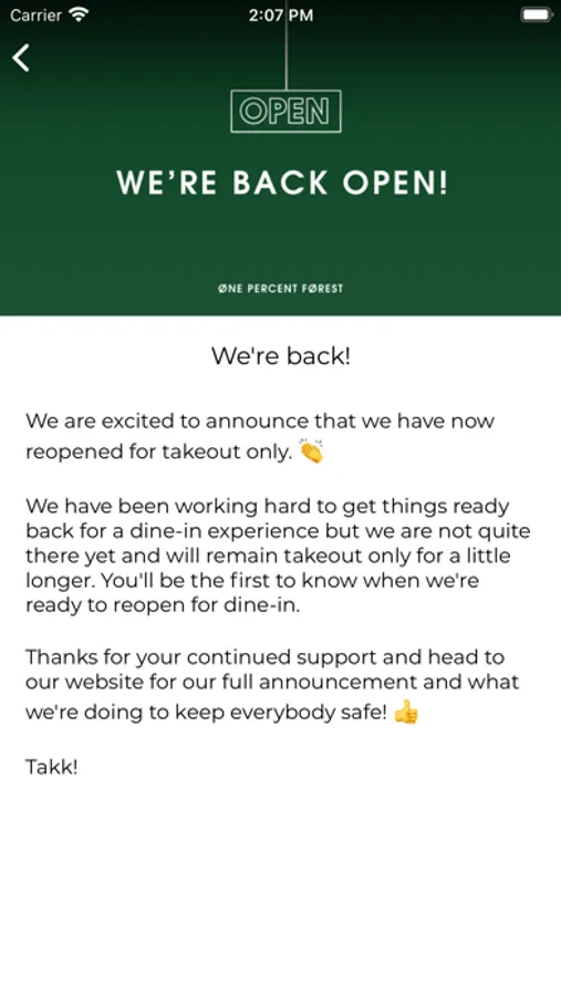 The One Percent Forest app will make the most of your in-store experience, allowing you to pay through your mobile via