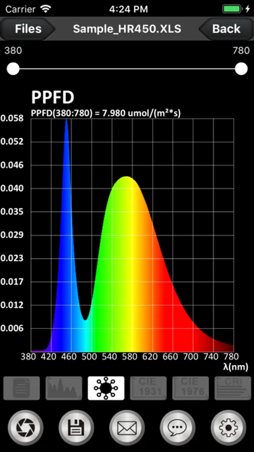 PPF Analyzer App is a lightweight, portable, easy-to-operate spectrometer with WiFi remote control operations and SD card data storage. This product has basic features for fast, easy lighting readings, as well as advanced light analytics, and efficient work-flow features for lighting production environments.