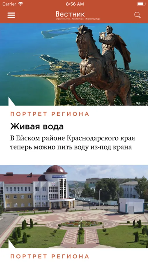 Отраслевой журнал «Вестник. Строительство. Архитектура. Инфраструктура» зарекомендовал себя как качественное отраслевое издание, профессионально освещающее вопросы строительства, архитектуры, инфраструктуры и ЖКХ России, Республики Казахстан и Республики Беларусь. В каждом номере «Вестника» выходят аналитические материалы, профессиональные обзоры, отраслевые рейтинги, инфографика.