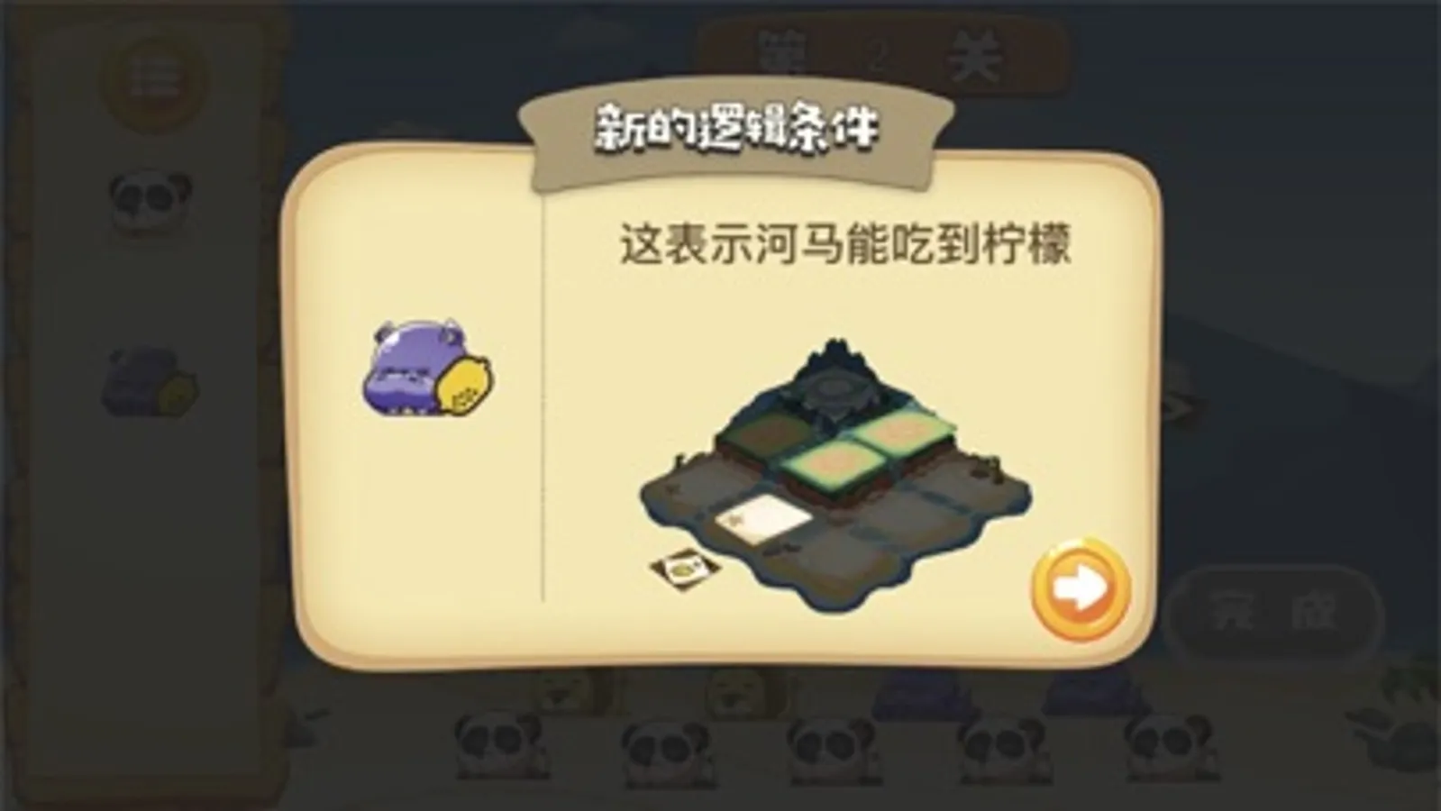 通过对不同动物的位置条件设定,要求正确摆放处满足条件的解决方案,是最直接锻炼逻辑推理能力的游戏。游戏不仅有九宫格中的逻辑思考,还有对高中低空间关系的理解,游戏中关卡难度逐级递增,帮助循序渐进的逐步建立逻辑思维模式。