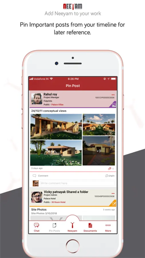 Work with Neeyam – Through this app, a user can store data and rapidly share it either selectively or with all concerned users of the project to facilitate their involvement. A user can create a post as a notice, agenda or an issue and tag other users in that post for uninterrupted workflow. For better coordination, even a minor amendment by the user reflects on the timeline of other users.