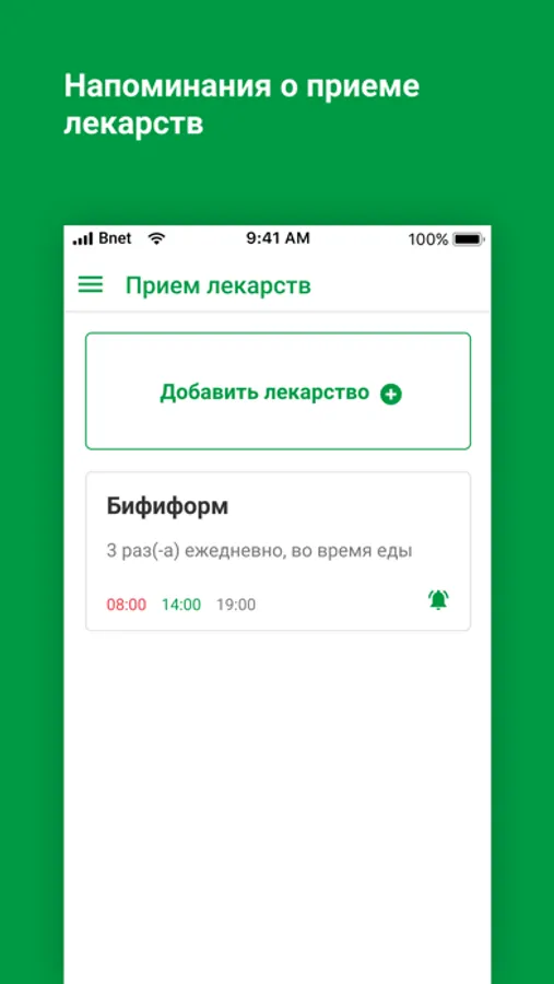 Мы заботимся о Вас. Мобильное приложение будет присылать Вам уведомление о времени приема лекарств.